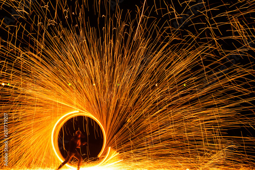 Fototapeta premium Circle Fireshow at beach, Koh Lanta, Thailand