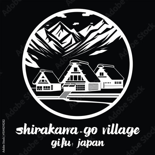 © sakura28, Fototapeta premium Circle Icon Shirakawa-go Village. Vector illustration