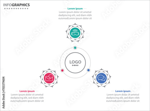 © Aniket, Naklejka premium Circle infographic template with 3 options for presentations. Vector infographic design template. diagram, number options. Data visualization. Business concept with 3 steps, seven process.