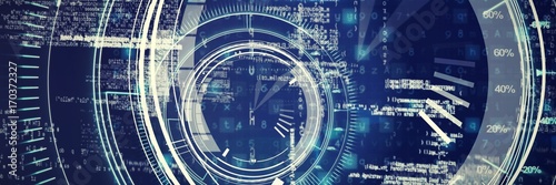 © vectorfusionart, Naklejka premium Circle interface with percentage in blue background