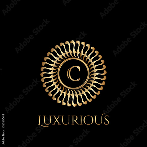 Fototapeta premium Circle luxury logo with letter C and symmetric swirl shape vector design logo