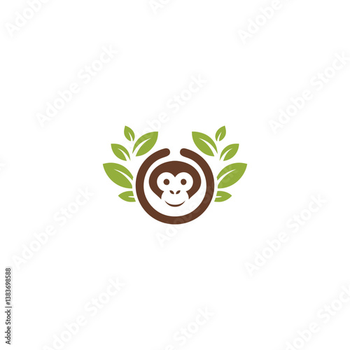 Fototapeta premium Circle Monkey Leaf Logo Organic Primate Nature Mascot
