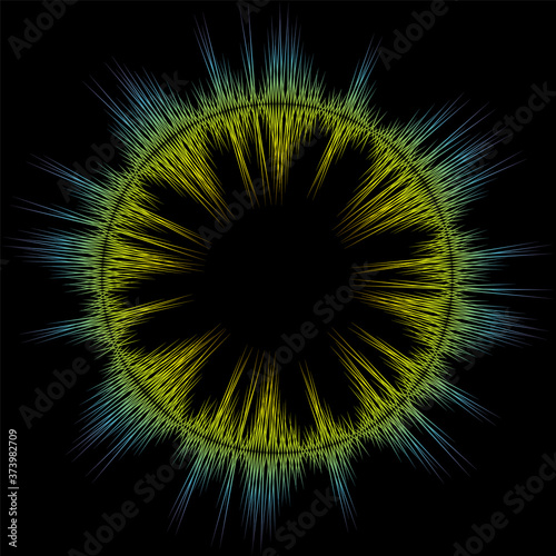 © tinakris, Obraz premium Circle music wave background. Jpeg colorful round wave banner. Audio pulse player waveform illustration.