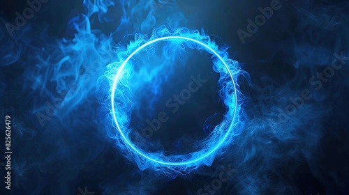 © Humam, Obraz premium Circle Neon Blue Color - Geometric Ring on Dark Background