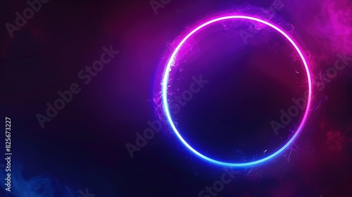 Obraz premium Circle Neon Blue Cyan Purple Color - Geometric Ring on Dark Background