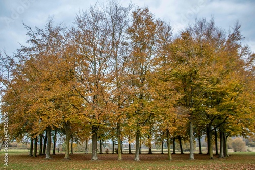 © Penny, Fototapeta premium circle of golden coloured trees on an Autumn day