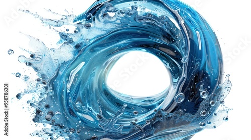Fototapeta premium circle Swirl of blue water. Rounded splash of blue water isolated on white background