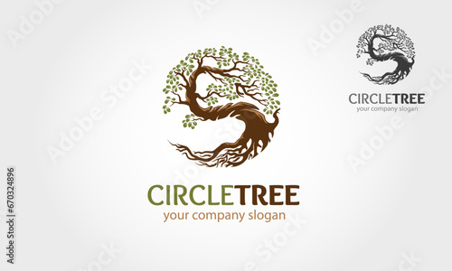 Fototapeta premium Circle Tree Vector Logo Template. Circle tree silhouette of a tree, vector logo illustration.