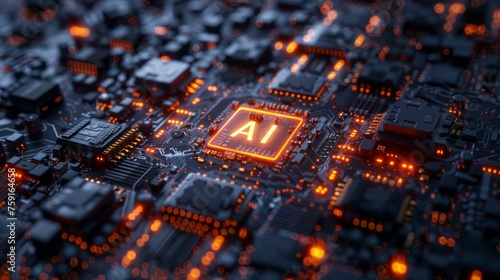 Fototapeta premium Circuit board close-up. Electronic computer hardware technology. Motherboard digital chip. Tech science background