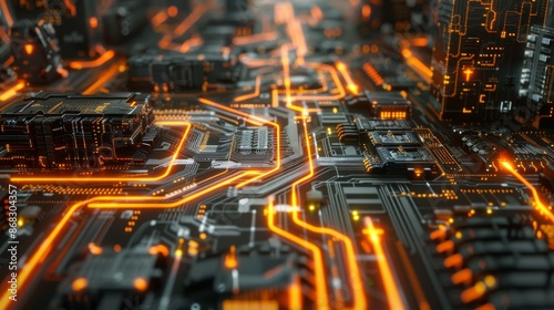 © Habibur Rahaman, Obraz premium Circuit board closeup. 3d rendering abctract background