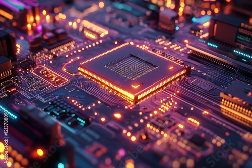 © Inkreatif, Fototapeta premium Circuit Board: Glowing Processor's Core