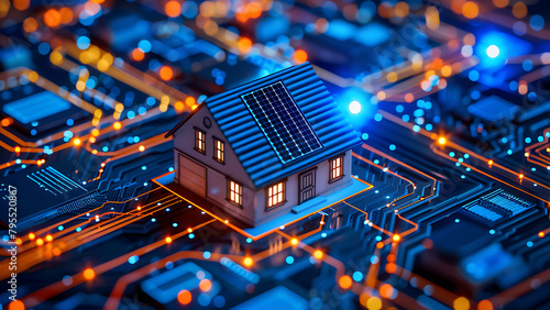 © Art.disini, Obraz premium Circuit board house. Home automation concept. Home Energy Management Systems AI.