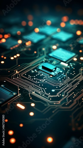 © Sidewaypics, Fototapeta premium Circuit Board Material Structure Background - Generative AI
