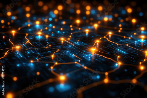 Fototapeta premium Circuit Board Signals Flowing Smoothly Through Network Nodes Efficiently