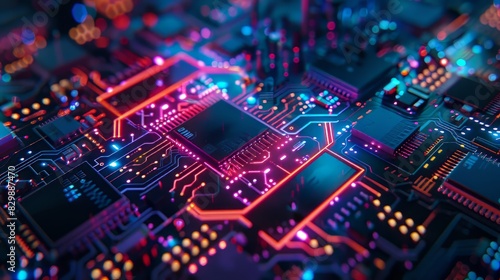 © Mrzproducer, Obraz premium circuit board with a glowing purple and blue light.