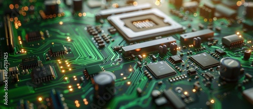 Obraz premium Circuit Board with Glowing Components.