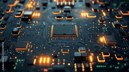 © shikatso, Obraz premium Circuit board with glowing CPU