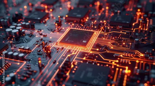 Obraz premium Circuit Board with Glowing Wires