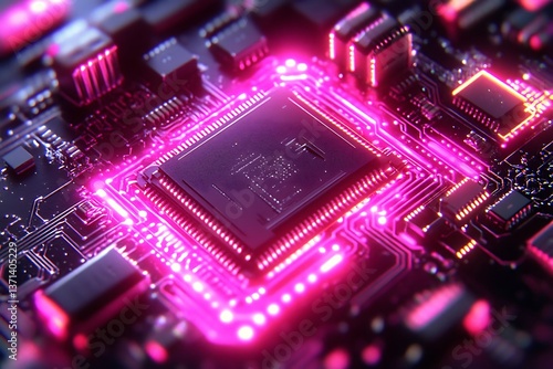 Obraz premium Circuit Board with Illuminated Chip (2)