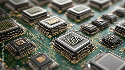 © Lesuna, Fototapeta premium Circuit Board with Microchips Close-up