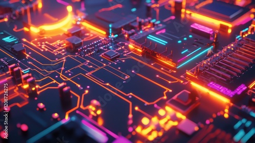 © kiki__, Obraz premium Circuit Board with Neon Lights