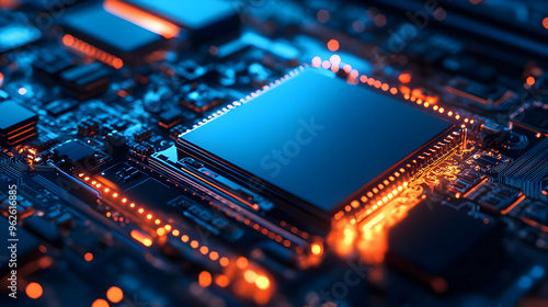 Obraz premium Circuit Board with Processor Close-up 3D Illustration