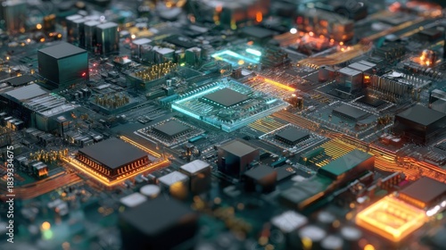 © Johannes, Fototapeta premium circuit boards electronic network a closeup perspective reveals a mesmerizing array of microchips and intricate circuits