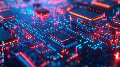 © Антон Сальников, Obraz premium Circuit boards with blue and purple technology