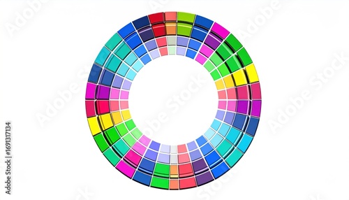 Fototapeta premium Circular Arrangement Of Colorful Squares On White Background Abstract...