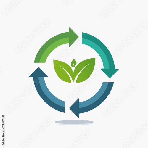 © Nani, Fototapeta premium Circular Arrows with Leaf Symbolizing Renewal and Sustainability.