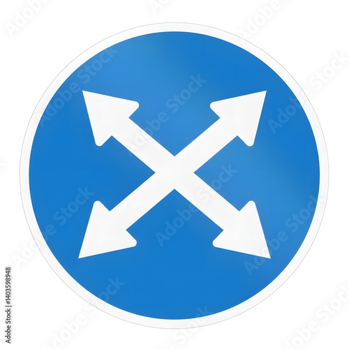 © GedhangKlutuk, Fototapeta premium Circular Blue Road Sign with Intersecting White Arrows