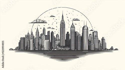 © Zuriat, Naklejka premium Circular cityscape line drawing, simple and stylish illustration