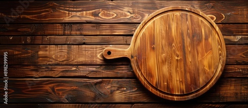 Fototapeta premium Circular cutting board on a vibrant wooden backdrop with ample copy space image