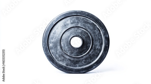 © vadosloginov, Obraz premium Circular dark gray weight plate on white background