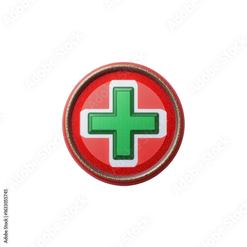 © ColorfulFlowerStudio, Obraz premium Circular First Aid Symbol with Red Background and Green Cross Design