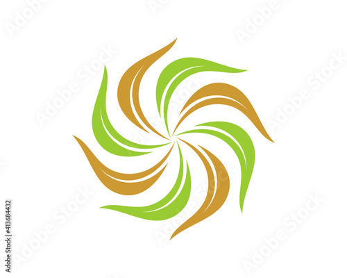 Fototapeta premium Circular green and gold leaves logo