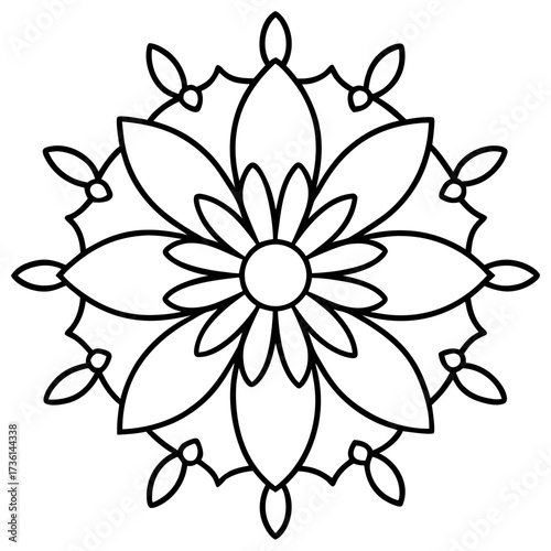 © Shahina, Fototapeta premium Circular mandala with daisies and decorative lines