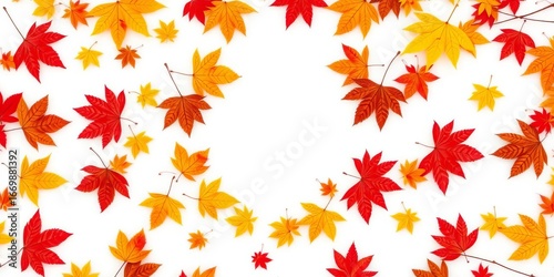 © Priwan, Fototapeta premium Circular maple leaf frame, autumnal design, white background, wreath, colorful