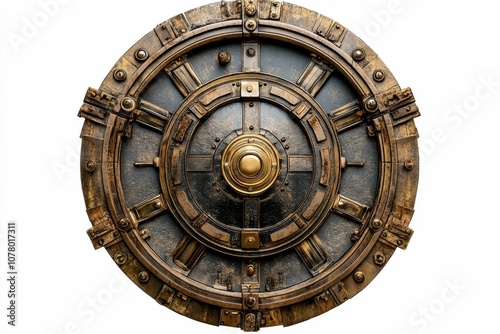 © Murda, Fototapeta premium Circular, metal door with intricate design.