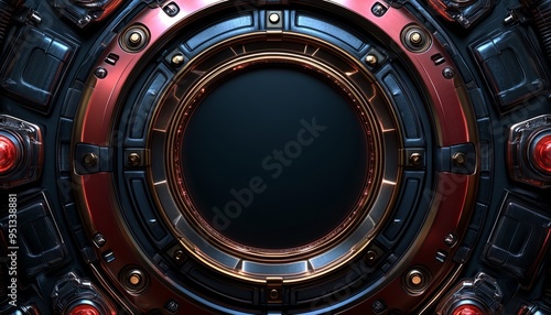 © Nob, Fototapeta premium Circular Metal Panel with Glowing Red Lights and a Black Center