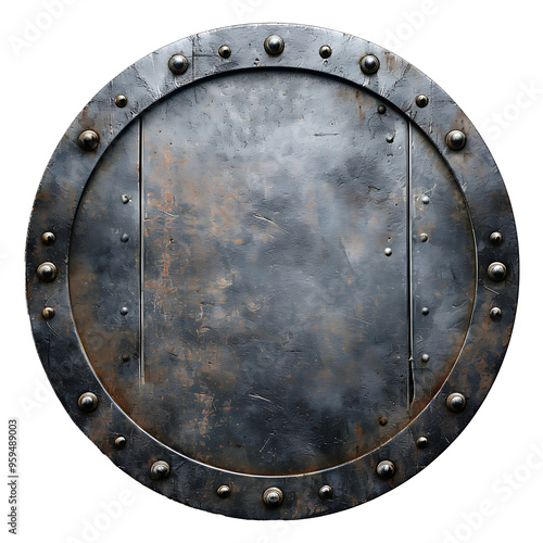 © Dentma Art, Naklejka premium Circular Metal Shield with Rivets and Rusted Texture