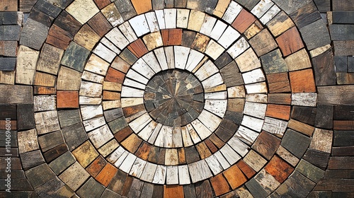 Fototapeta premium Circular mosaic design created with wooden tiles and natural colors.