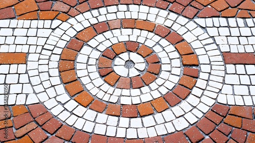 © Biggy, Fototapeta premium Circular Mosaic Design Featuring Red and White Tiles on Surface