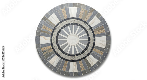 © Rowshan, Obraz premium Circular mosaic tabletop with geometric pattern isolated on white background