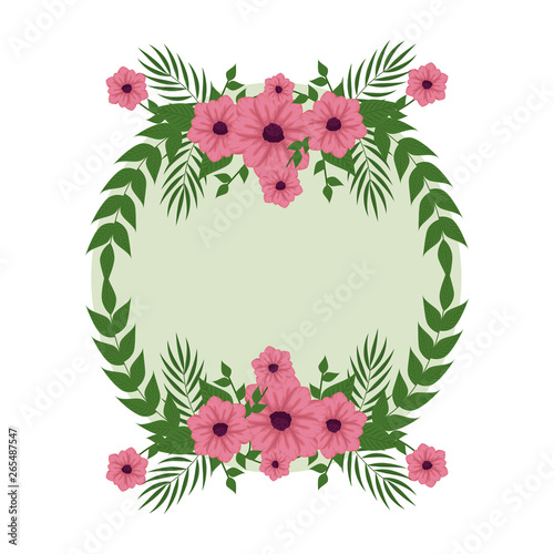 Naklejka premium circular postcard with roses and leafs decoration