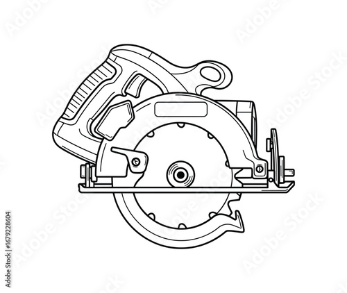 © MVectors, Fototapeta premium Circular Saw Black and White Outline Tool Vector Illustration