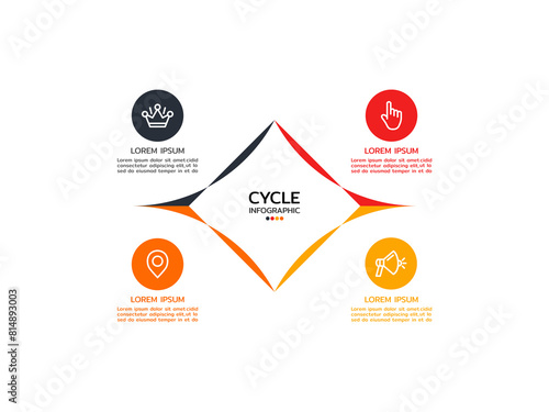 © Aphichart, Fototapeta premium Circular scheme with four options or elements with marketing icons. Concept of cyclic business process with 4 stages.