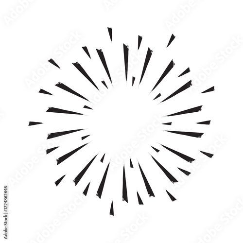 © Полякевич Олена, Obraz premium Circular star silhouette. Radiant burst icon. Rough radial pattern. Vector dynamic shape.