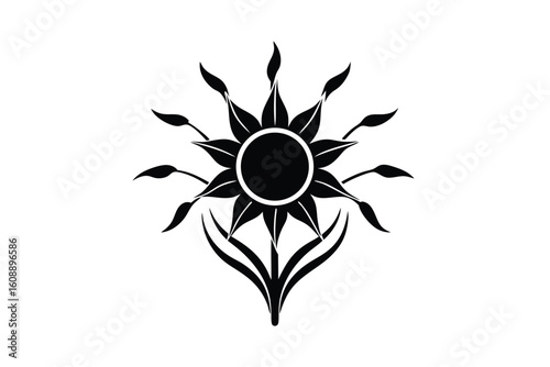 © swpna, Obraz premium Circular Sun Floating Above Stylized Daffodils Vector Graphic Illustration