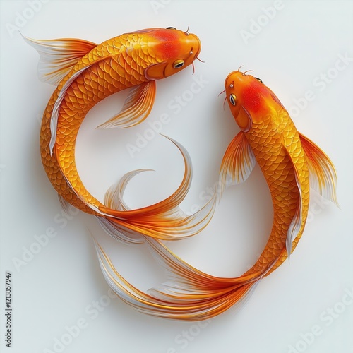 © StarWhite, Fototapeta premium Circular Swimming Pattern Golden Koi Fish 3D Render
